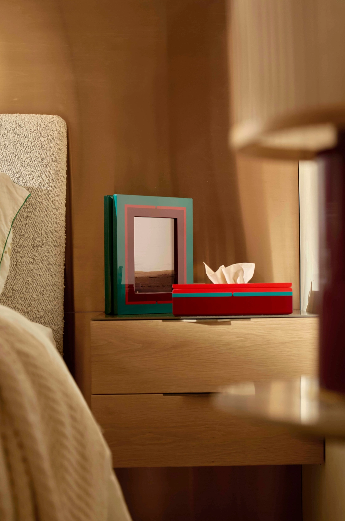 Dòng sản phẩm tạo dấu ấn riêng bằng sự kết hợp màu sắc đầy nghệ thuật. Sự hòa quyện giữa đỏ thẫm và xanh cổ vịt trên từng thiết kế mang đến vẻ trầm ấm, cân đối, vừa gợi cảm giác dễ chịu, vừa trở thành điểm nhấn cuốn hút cho không gian.