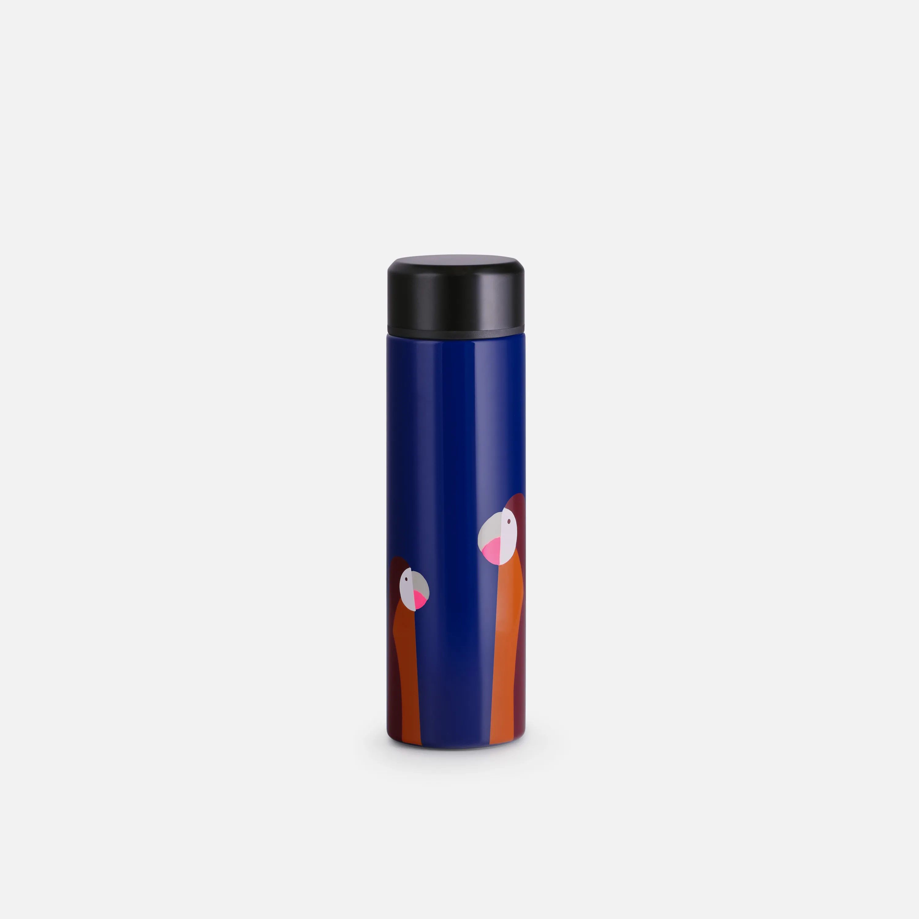 Bình giữ nhiệt gây ấn tượng với hiệu ứng chuyển màu rực rỡ, tạo nên một dải sắc thái đầy cuốn hút. Điểm nhấn trên thân bình là họa tiết vẹt được vẽ tay tỉ mỉ, tôn vinh kỹ nghệ thủ công tinh xảo.