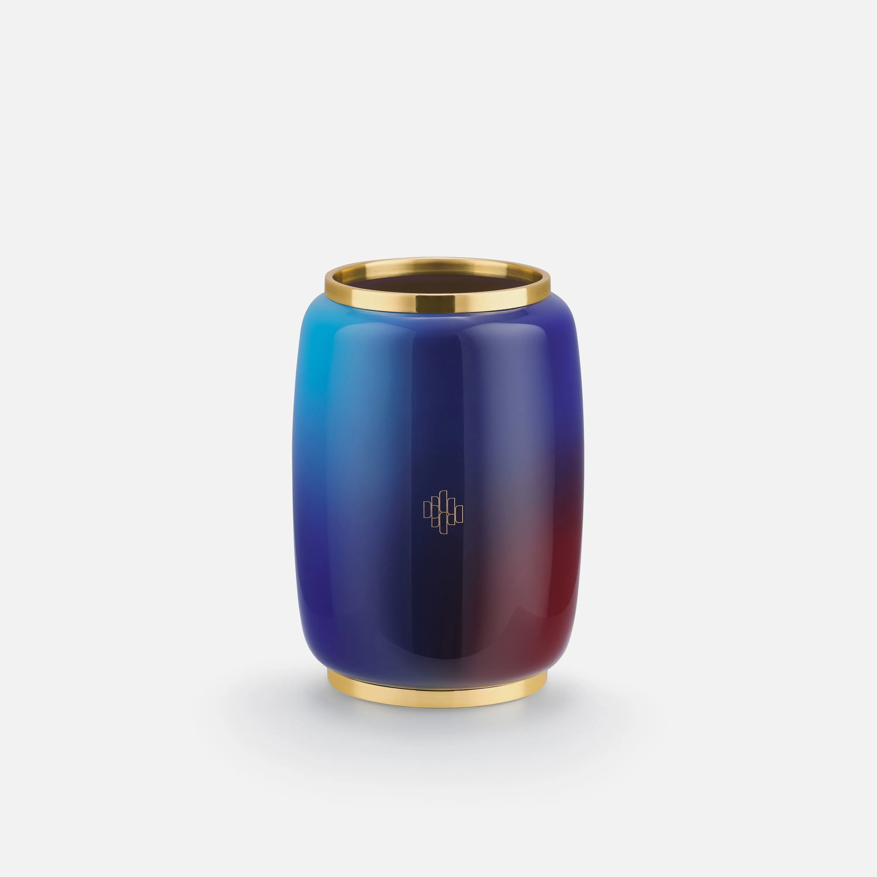 Bình hoa Moonbow ứng dụng kỹ thuật lan màu với hai màu xanh dương và tím để tạo hiệu ứng chuyển sắc. Thân bình được hoàn thiện bằng chi tiết khắc vào màu nhũ vàng để tạo điểm nhấn.