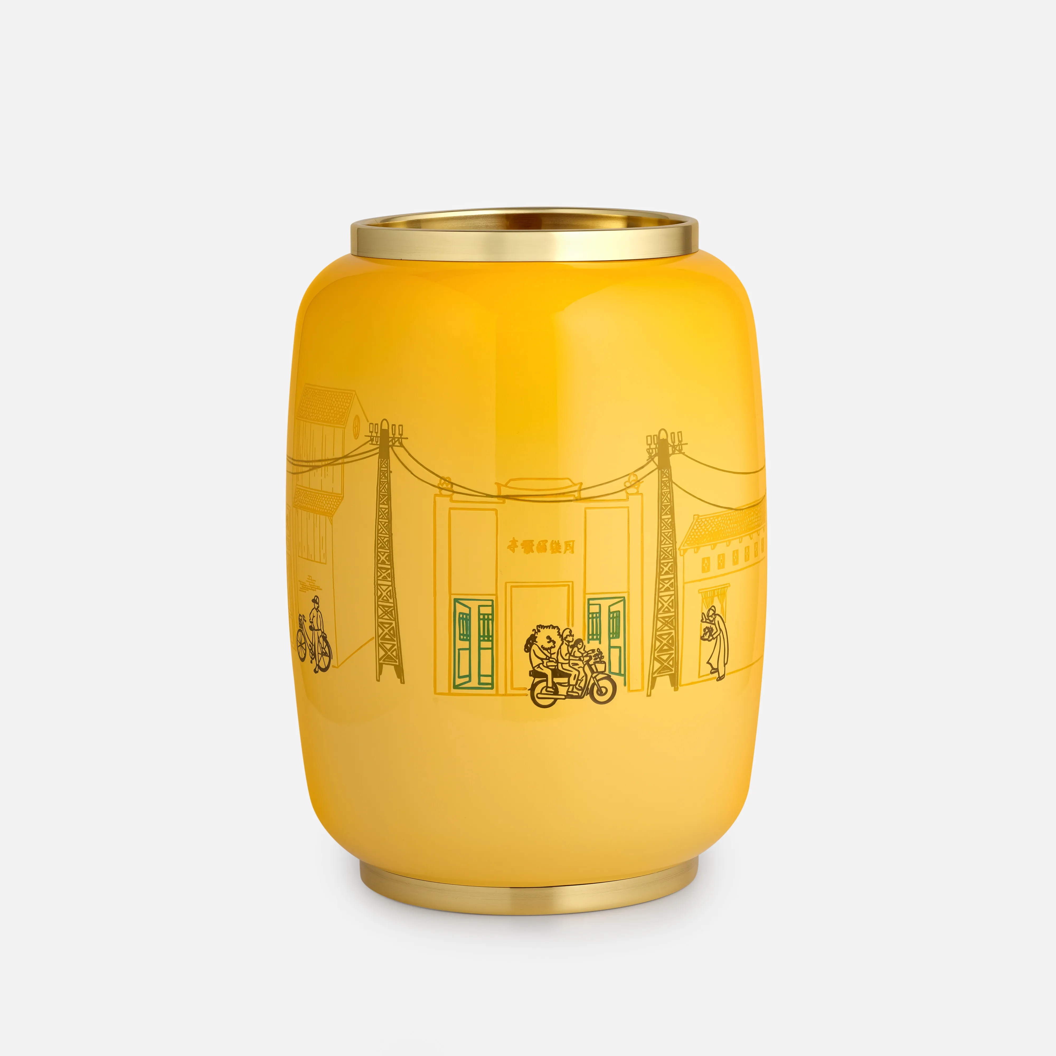 Hanoia sử dụng kỹ thuật khắc và vẽ tay xung quanh bình hoa để tái hiện một cách sinh động từng góc phố, cuộc sống cư dân trên nền màu vàng - màu sắc đặc trưng của kiến trúc thủ đô. Sự thể hiện mộc mạc của Lys Bùi mang đến cho ta cảm giác được hoà mình trong không khí nhộn nhịp, đầy ắp những âm thanh quen thuộc như tiếng rao của gánh hàng rong, tiếng leng keng của xe đạp hay cả tiếng xì xào của lũ trẻ chơi bi trên hè phố.