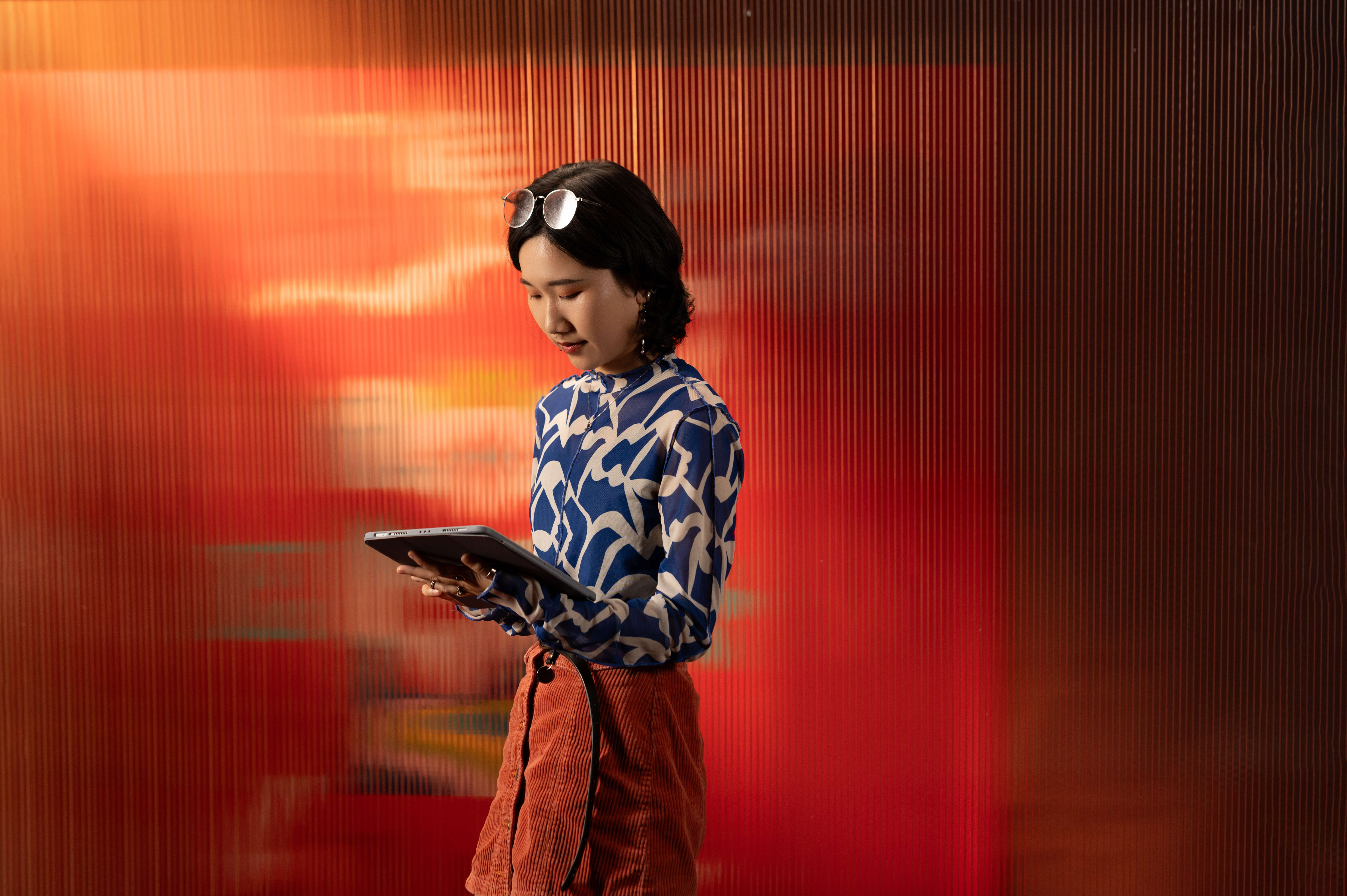Với nền sơn mài bóng bẩy cùng sắc đỏ tươi giàu năng lượng, Camelia Phạm đã có những trải nghiệm vô cùng thú vị. Sự lựa chọn kỹ lưỡng các tông màu tươi sáng không chỉ giúp nổi bật những chi tiết nhỏ như bàn tay, đôi mắt... mà còn là ấn tượng thị giác lôi cuốn ánh nhìn, giúp người xem dễ dàng hòa vào bức tranh và đồng cảm.