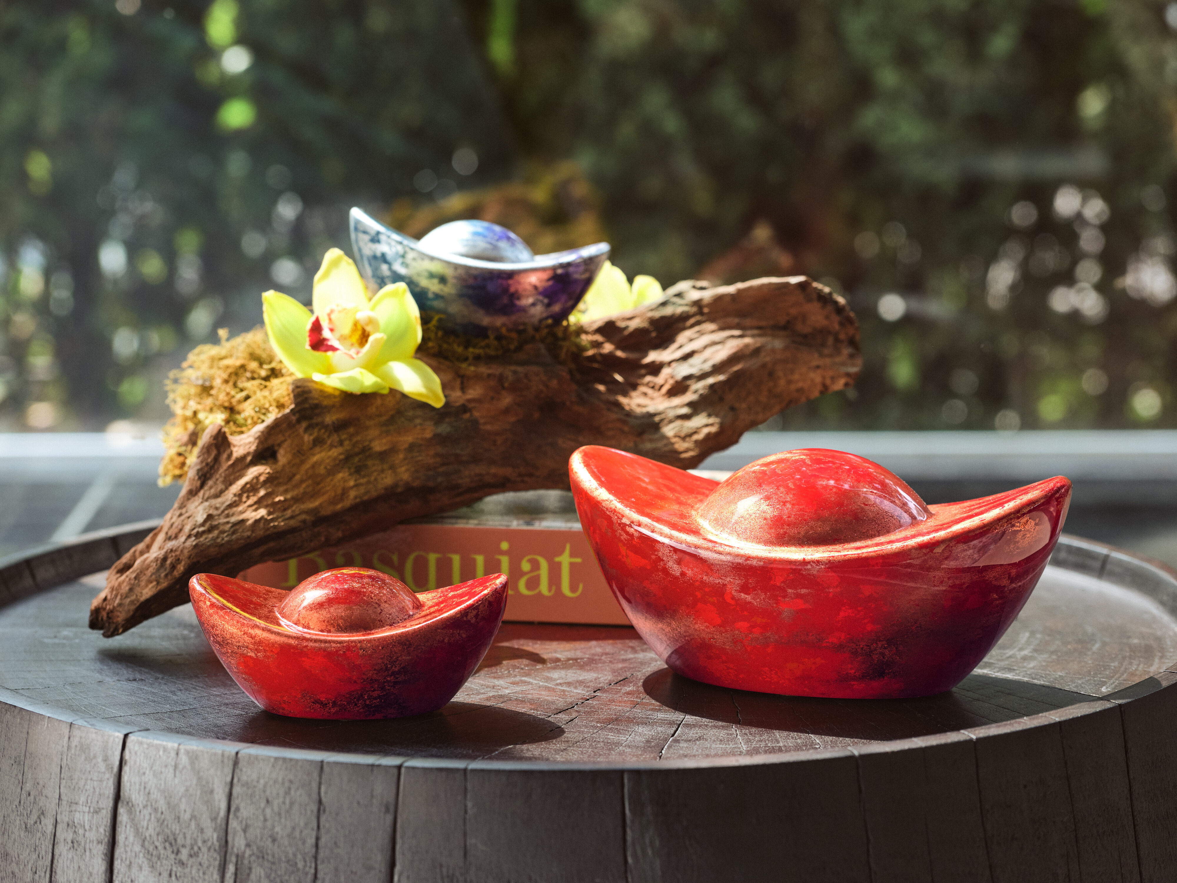 Thỏi vàng cũng là một phần không thể thiếu với những người yêu thích sự sang trọng, quý phái. Đã lâu, nguyên mẫu Kim Nguyên Bảo được biết đến là vật hút tiền tài, thịnh vượng trong quan niệm dân gian, đến nay, thứ quà đó được sở hữu diện mạo mới đặc sắc từ những mảng màu phong phú của lớp lá bạc phủ khắp bề mặt. Dáng hình nhỏ mà giá trị lớn, thỏi vàng là một món đồ trang trí mang đậm hồn Việt dành cho người sở hữu.