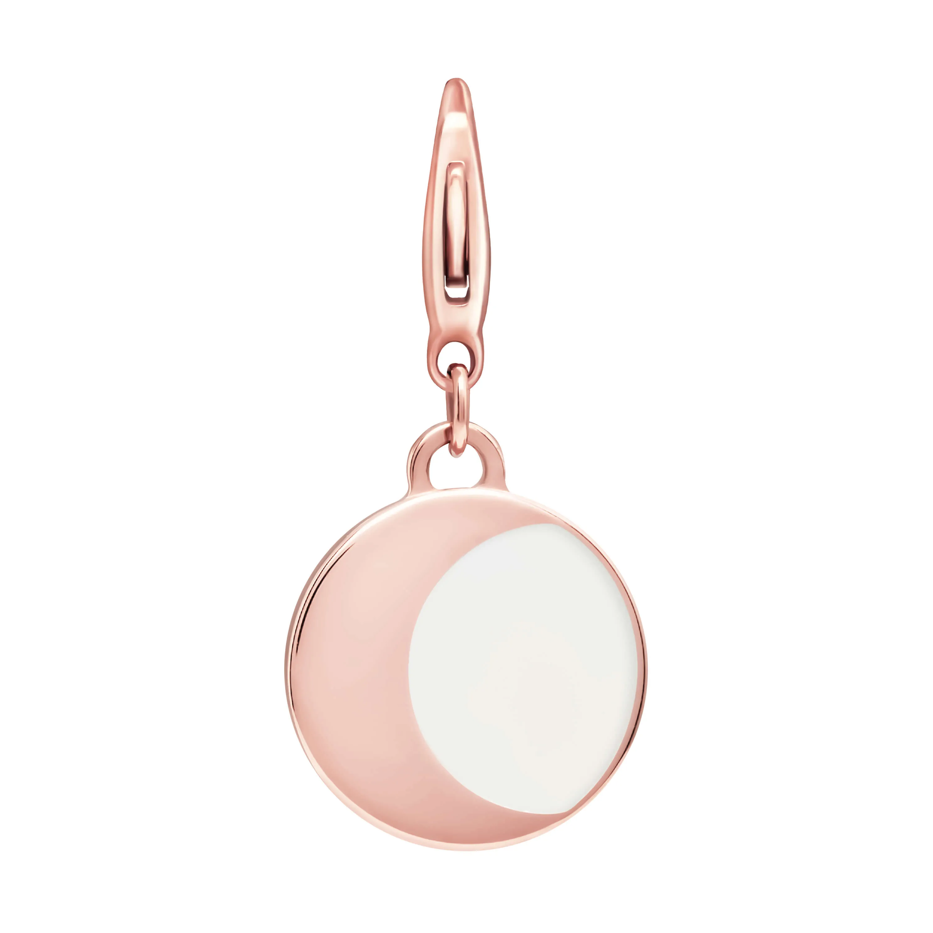 Charm Luminous mạ vàng hồng hình mặt trăng cùng chi tiết sơn mài màu trắng mang đến diện mạo mới mẻ cho chiếc vòng.