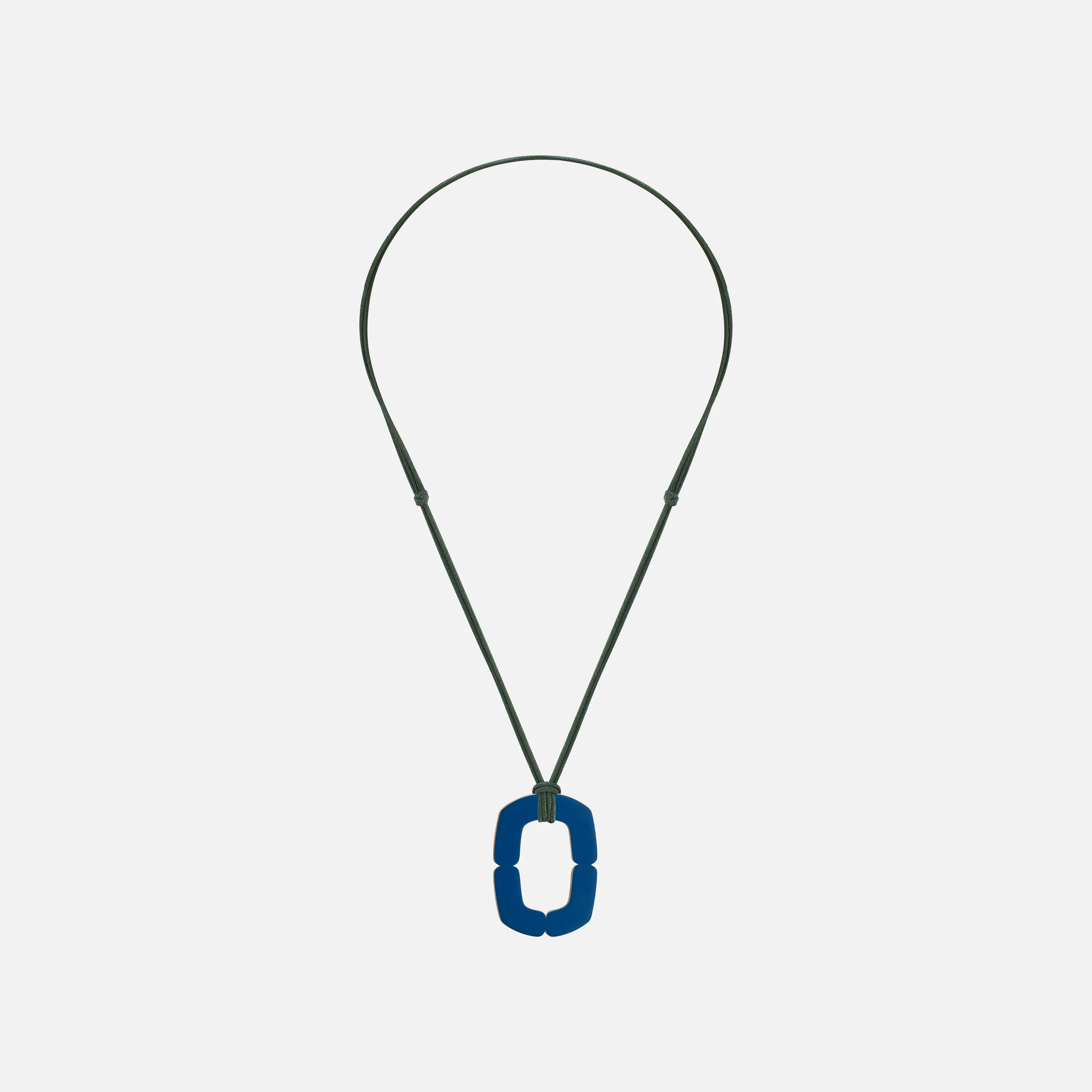 Mặt dây sơn mài mang phom dáng mềm mại, lấy cảm hứng từ những cánh hoa, với các chi tiết đồng điểm xuyết ở viền ngoài và mặt trong. Sản phẩm có ba phiên bản màu: xanh ngọc, xanh lam và đỏ.