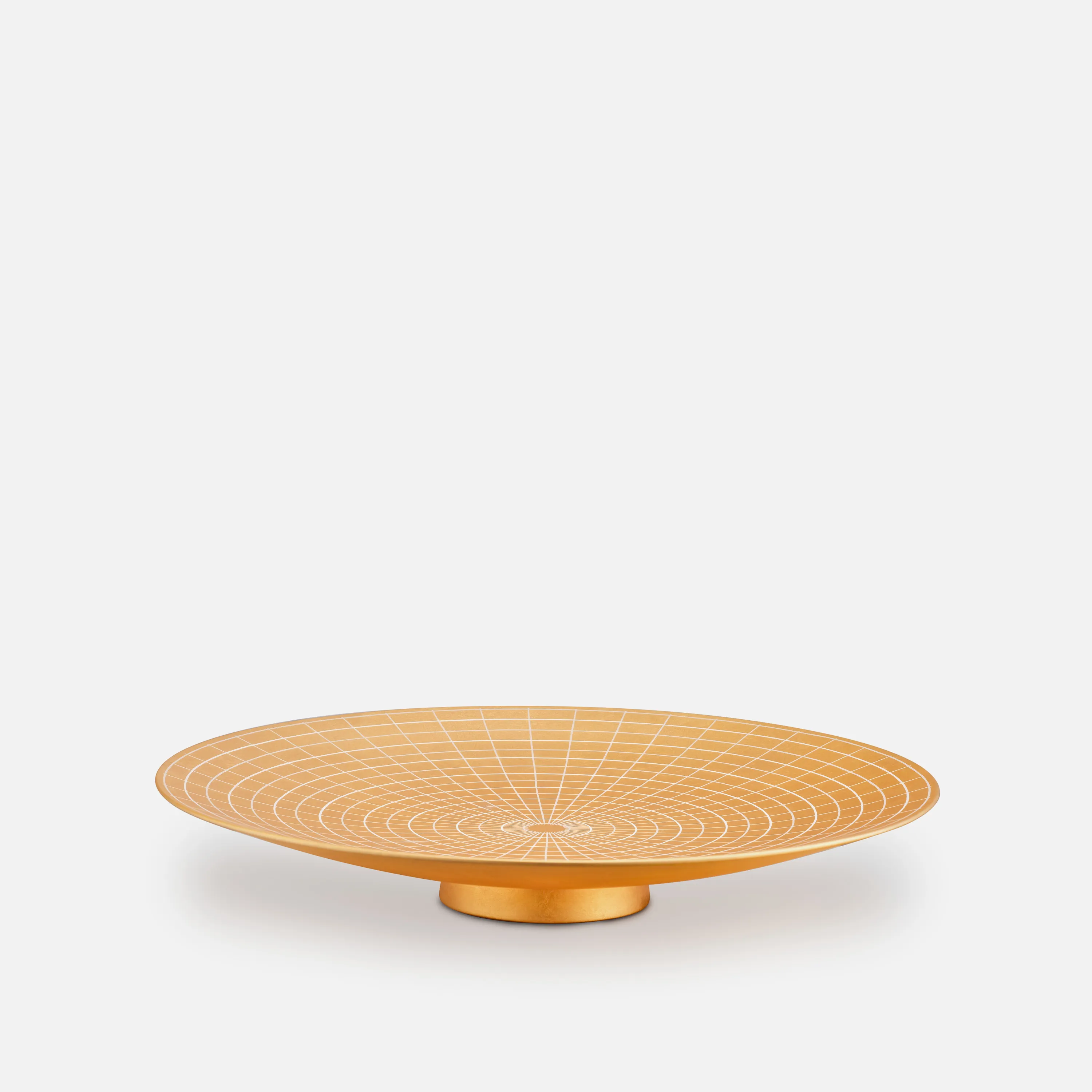 The entire tray is covered with 24K gold leaf, with its surface decorated by intertwining white hand-painted lines. As the light shifts, these lines change in hue, creating a lively visual effect.