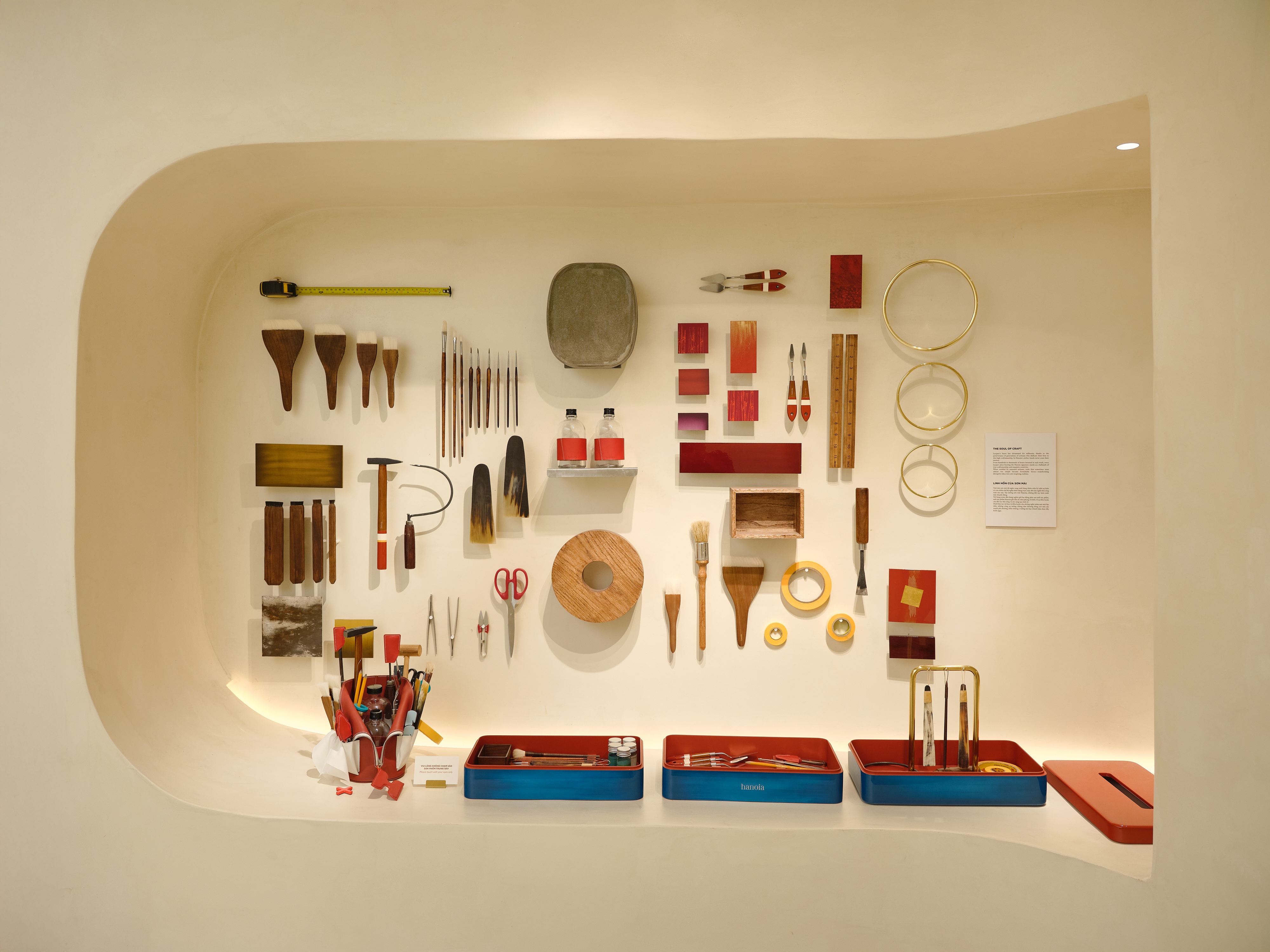 Alongside the main display space, the new store dedicates a special area where visitors can directly experience the crafting tools and discover each step that goes into making a lacquerware product—a first-time experience in nearly two decades of Hanoia’s retail presence. This miniature workshop helps customers understand not only the meticulous craftsmanship but also the long journey the brand has traveled to bring Vietnamese lacquerware, Vietnamese handicrafts, and Vietnamese creativity to the wider world.