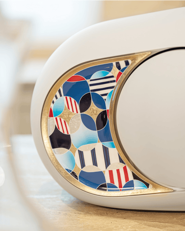 The Deep Forest Edition features blue stripes reminiscent of sailor uniforms and the French tricolor — blue, white, and red — reimagined in lacquer as a tribute to Devialet’s origins. Interwoven with these French symbols are Hanoia’s signature lacquer techniques, subtly reinforcing the message of this multicultural collaboration: a blend of cultures, refined artistry, and masterful craftsmanship.