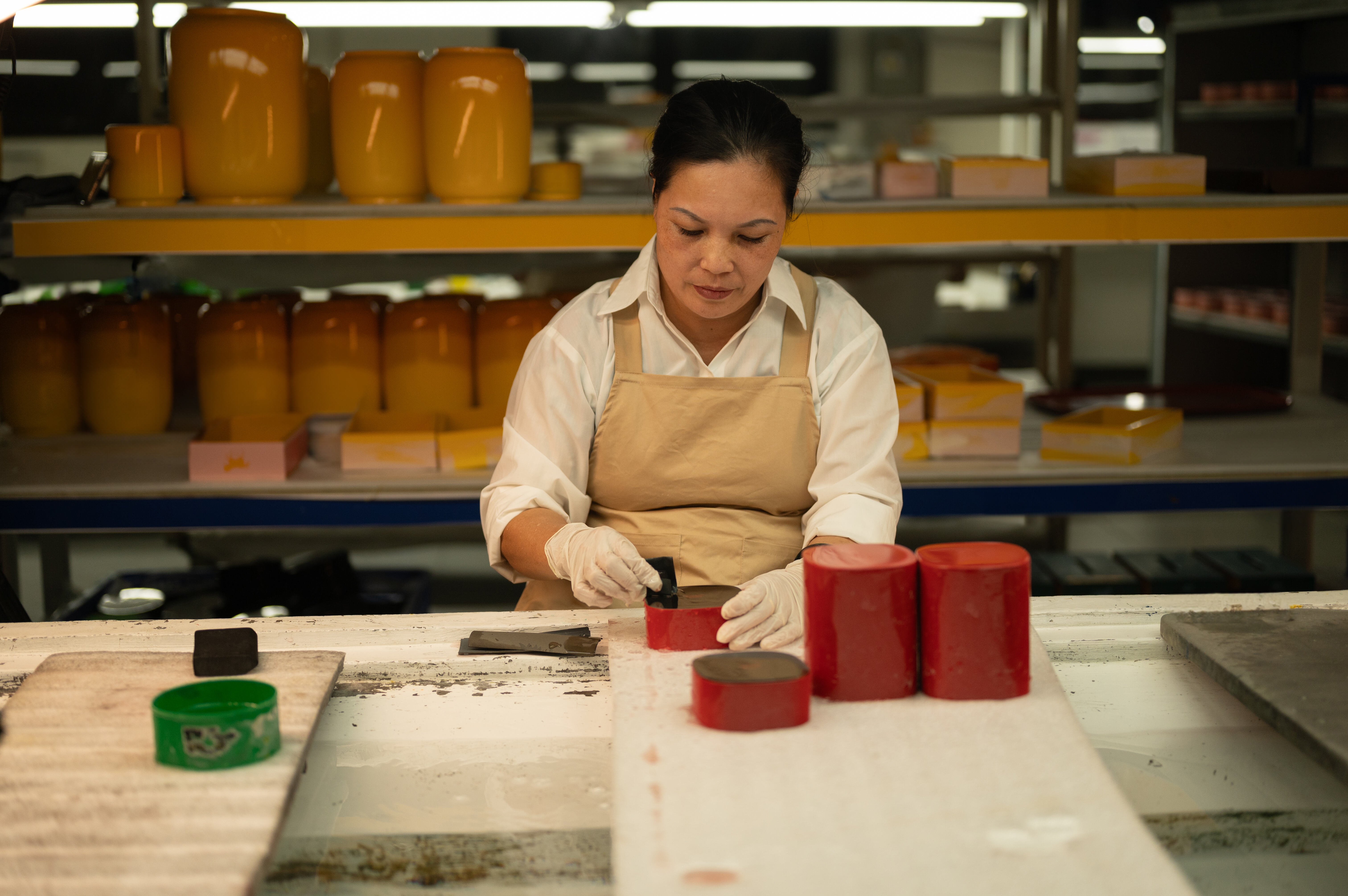 "From the need to reinforce wood materials against water and termites in the past, through a long and tumultuous journey, Vietnamese lacquer has found its rightful place in art and the lives of the Vietnamese people. In contemporary life, hand-painted lacquer products have gained popularity due to their vibrancy, intricacy, and the fascinating stories behind the complex artisanal production process. "
