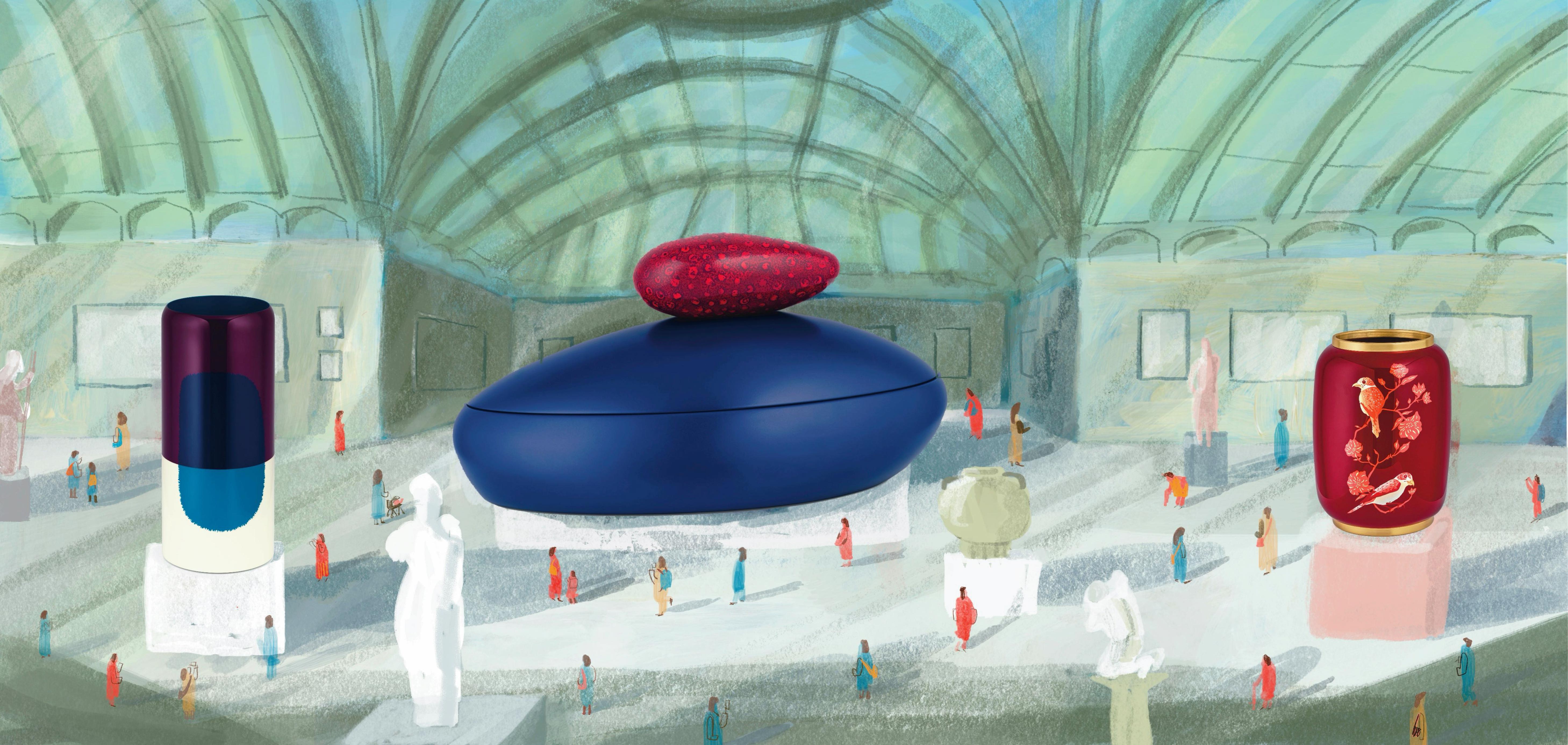 The collection begins with 'Awakening,' featuring designs of flower vases and tea boxes in various romantic hues like enchanting purple and deep blue. Hand-drawn patterns depict the elegance and delicacy of blooming lotus flowers, symbolizing the flourishing of free-spirited inspiration.
