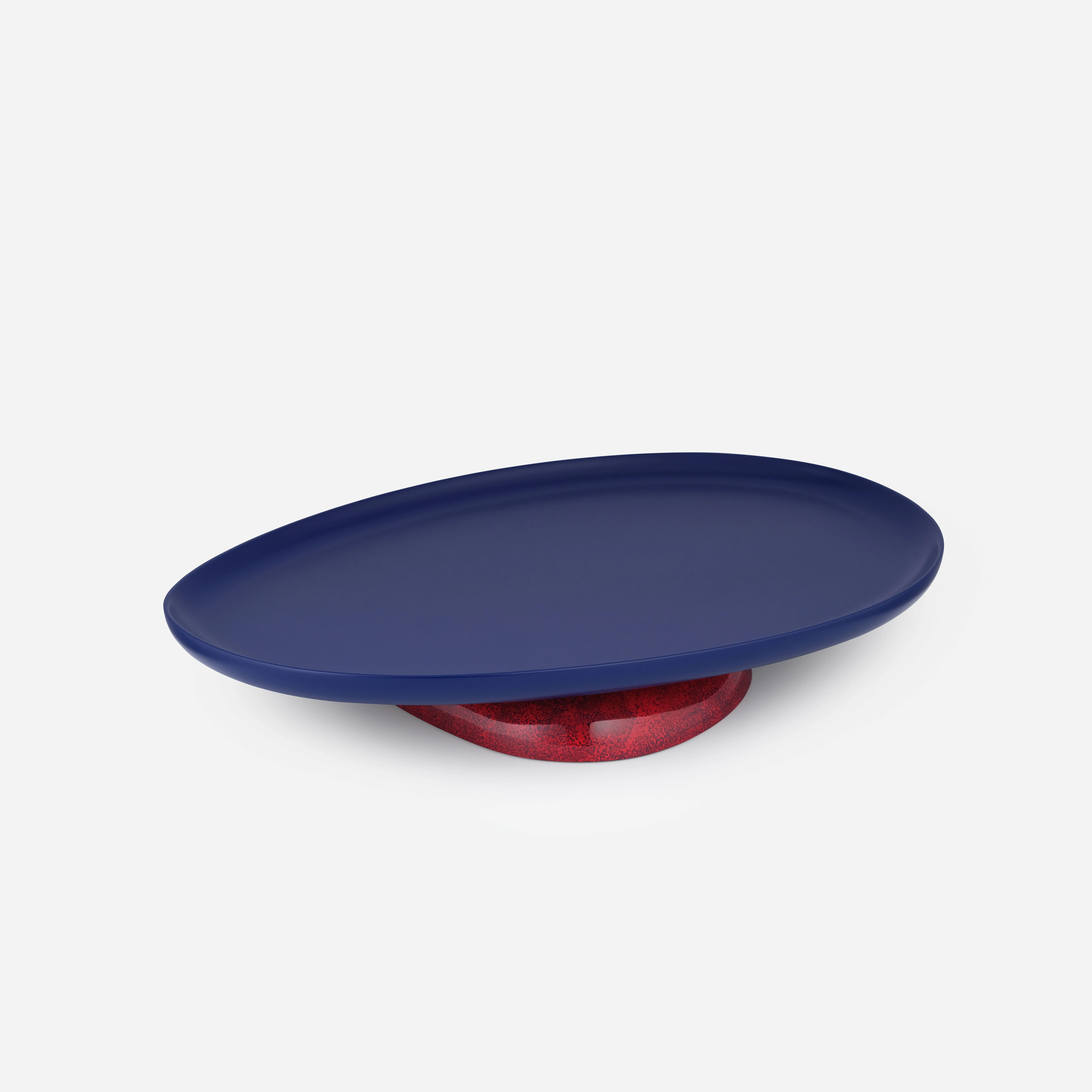 The deep blue oval tray, meticulously crafted with a base shaped like pebbles using a technique of hand-applied color dotting and sanding, creates an unforgettable impression. Its distinctive design and cool color palette make it a remarkable decorative piece for any living space.
