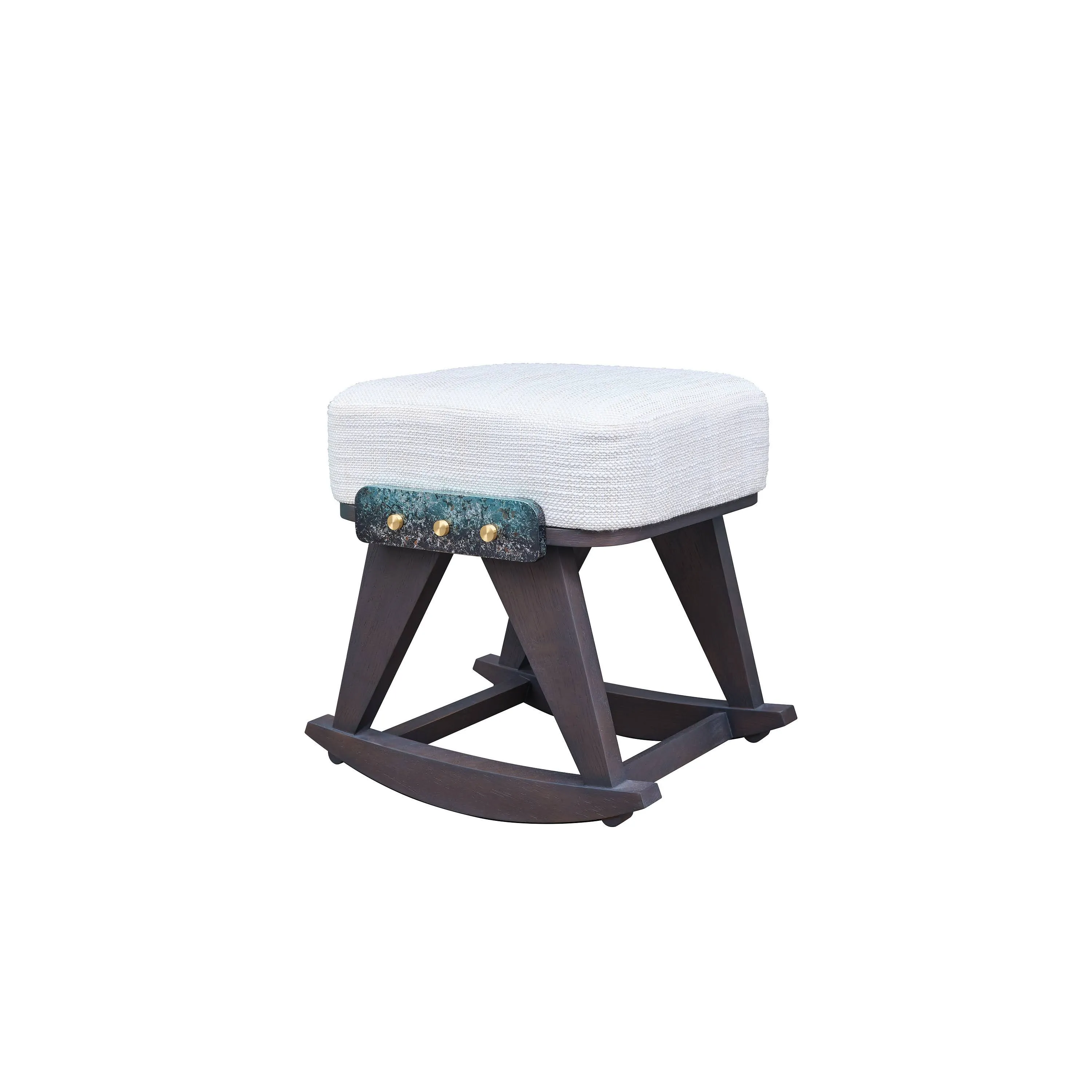 Ghế đẩu nhỏ làm từ gỗ sồi, đệm ngồi bọc vải Acacia. Điểm nhấn của món đồ nội thất là thanh trang trí hai bên sườn sử dụng hiệu ứng Moonbeam hoàn thiện bóng. Sản phẩm có hai phiên bản màu ghi và màu trắng.