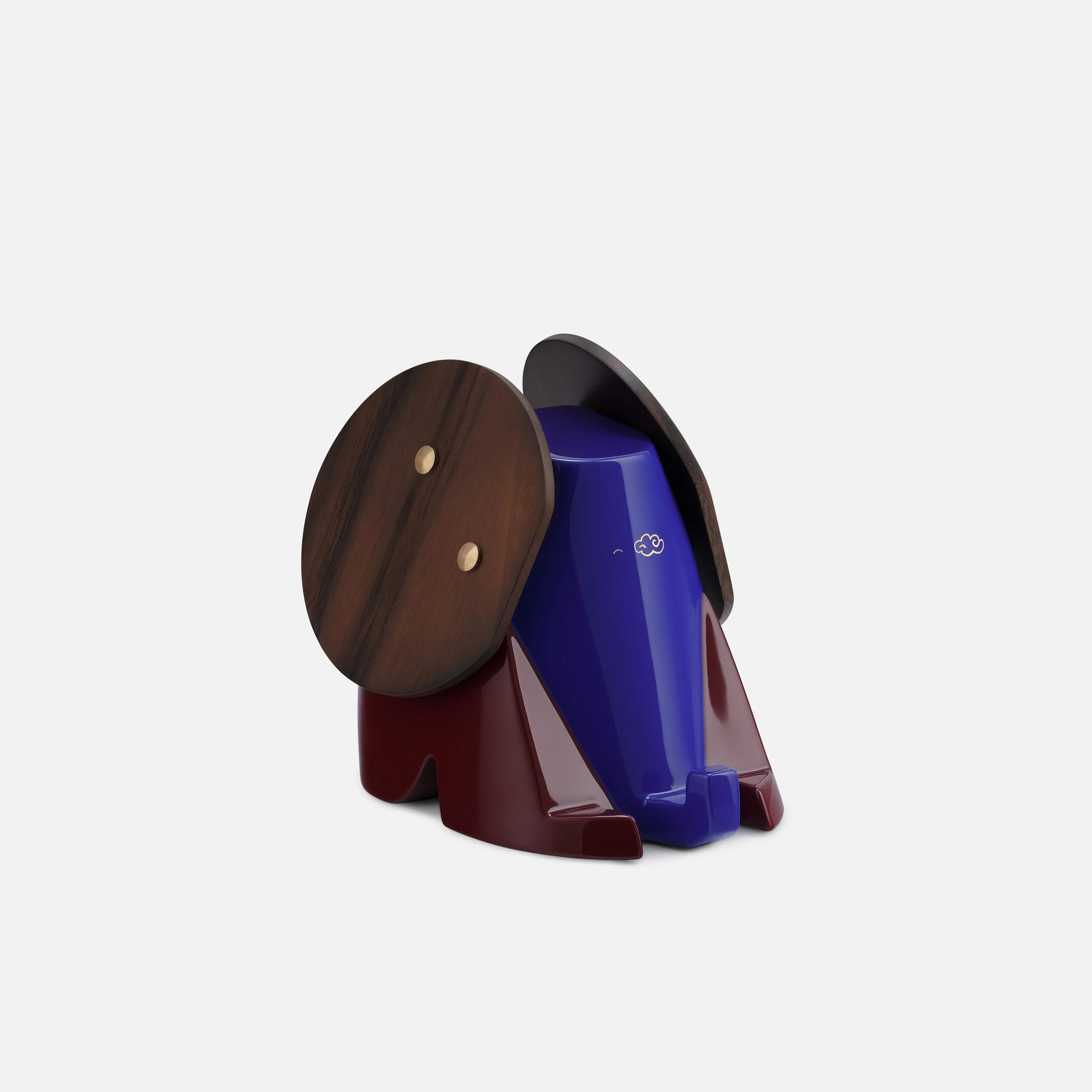 Thiết kế đặc trưng của tượng voi Elephone là sự kết hợp giữa các mảng màu tương phản. Những chi tiết thủ công như đôi tai gỗ óc chó và gương mặt trang trí nhũ vàng tạo nên điểm nhấn thẩm mỹ đa tầng cho tác phẩm.