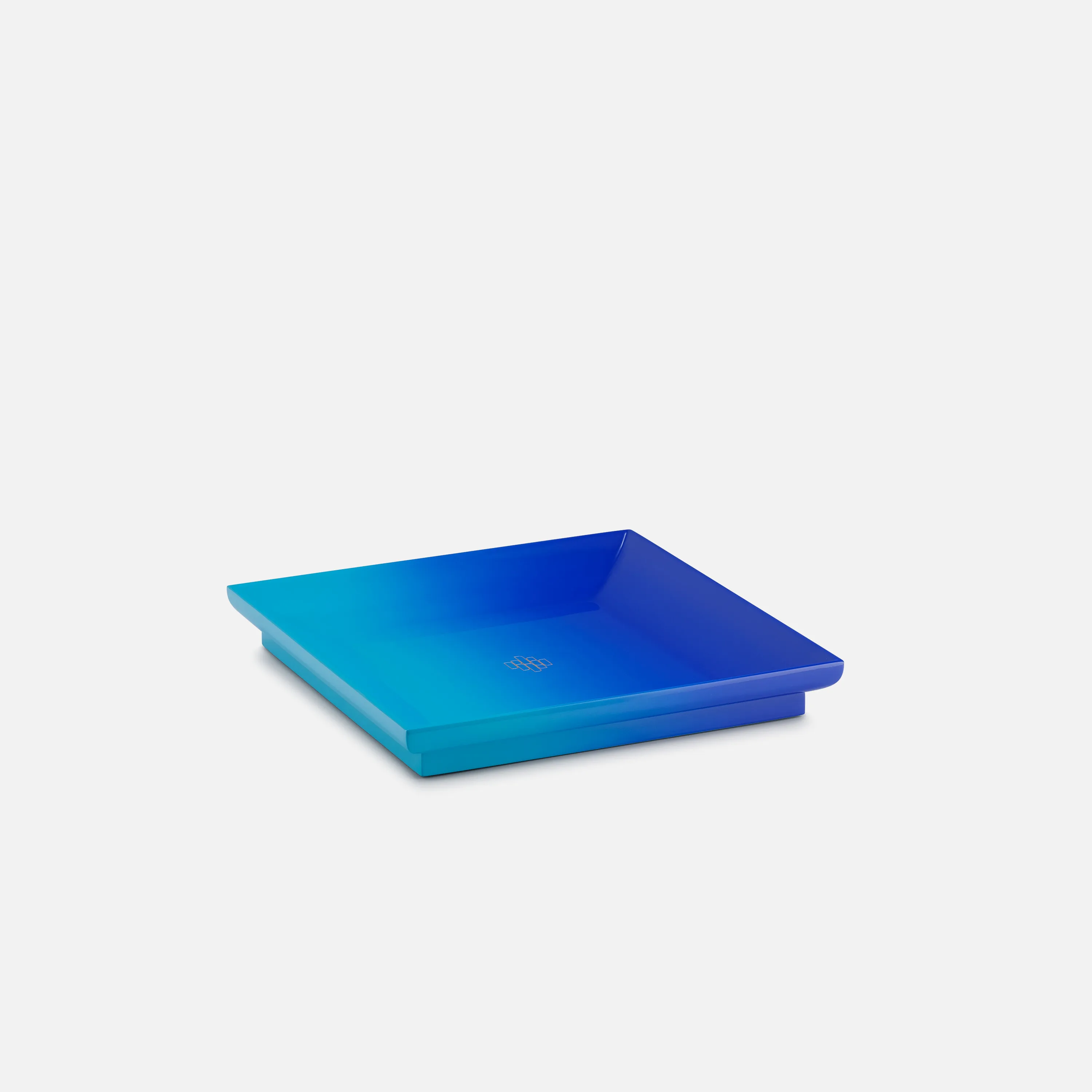 Khay vuông Moonbow lấy màu xanh dương đậm làm chủ đạo kết hợp kỹ thuật lan màu, tạo hiệu ứng chuyển sắc mềm mại. Lòng khay được hoàn thiện bằng chi tiết khắc vào màu nhũ vàng để tạo điểm nhấn.