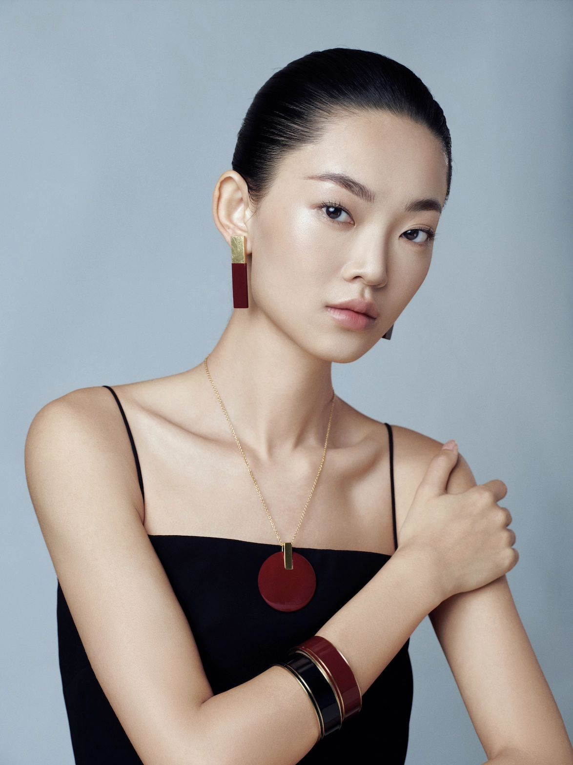 Lấy cảm hứng từ phố thủ công Hàng Đồng - nơi nổi tiếng với nghề làm đồ dùng bằng kim loại - dòng trang sức Tangerine là sự kết hợp giữa nghệ thuật sơn mài và kỹ thuật chế tác đồng tinh xảo.