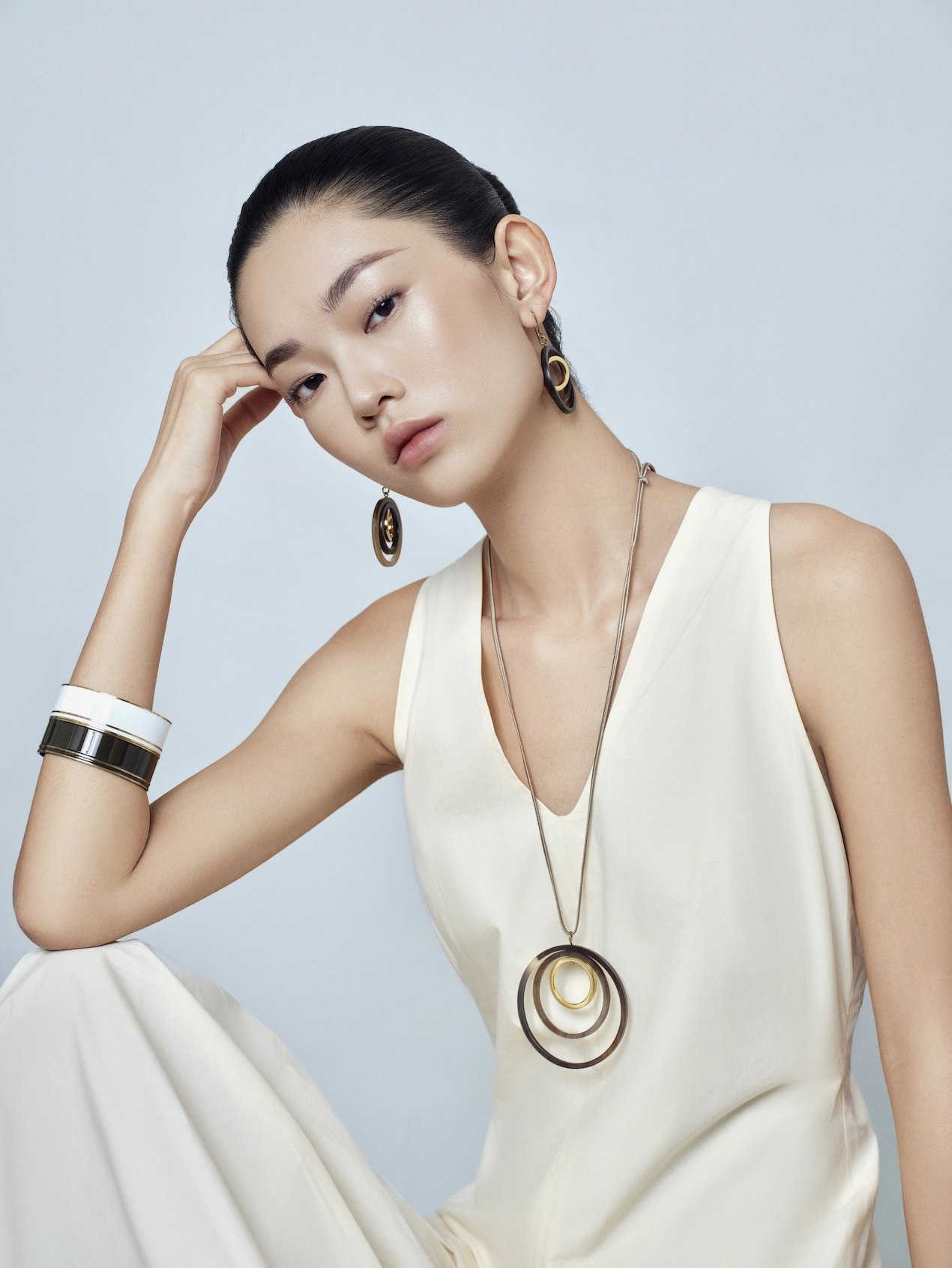 Lấy cảm hứng từ những cánh đồng lúa chín vàng trong nắng– biểu tượng của sự trù phú và gắn bó lâu đời với văn hóa Việt – dòng trang sức Rice gây ấn tượng bởi các vòng tròn lồng ghép đầy mê hoặc. Thiết kế kết hợp giữa đồng, sừng trâu sọc và sơn mài, tạo nên sự tương phản thú vị giữa những mảng màu của từng vật liệu.