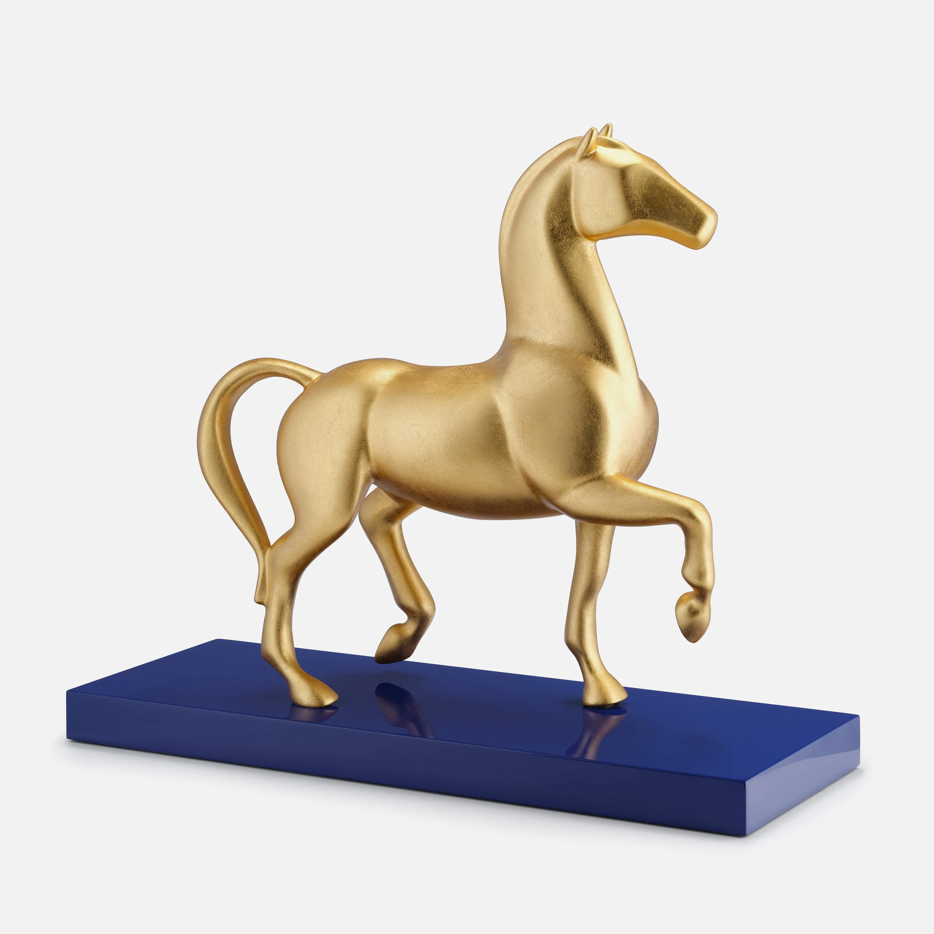 Gallop tái hiện khoảnh khắc chú ngựa khoan thai sải bước, được tạo dáng một cách hoàn mỹ, tác phẩm toát lên hình ảnh con vật khỏe khoắn và tràn đầy năng lượng. Phiên bản dát vàng 24K gợi liên tưởng đến sự trù phú, thịnh vượng, trong khi phiên bản đỏ và xanh mang đến sắc thái sống động, hiện đại, được nhấn nhá bằng phần đế dát vàng để hoàn thiện vẻ sang trọng cho thiết kế.