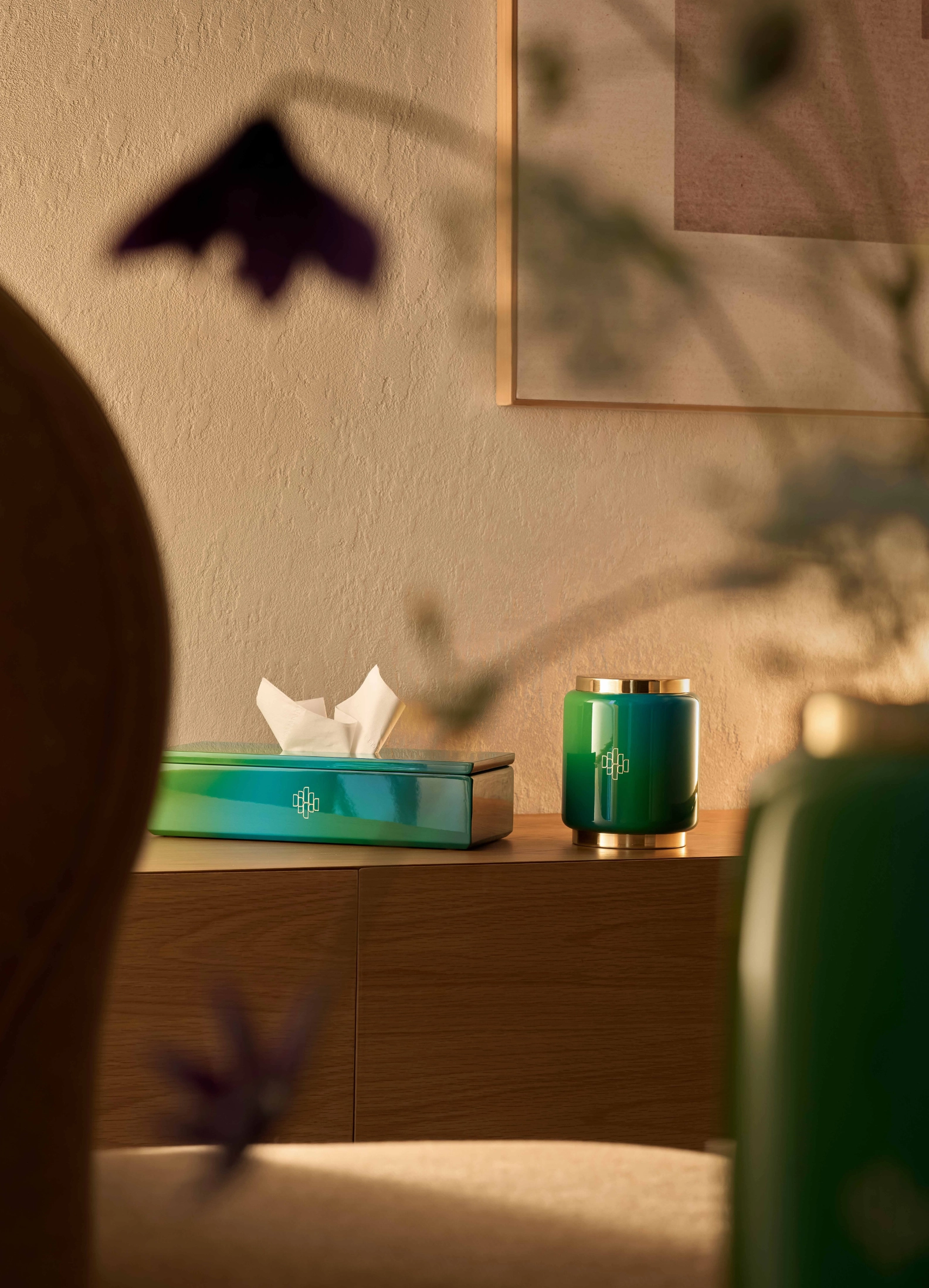 Hợp tác cùng nghệ sĩ minh họa người Pháp Lil Sire, Hanoia giới thiệu một góc nhìn cận cảnh nơi vườn phong lan rực rỡ sắc màu mang tên Bellus. Nhờ việc khéo léo kết hợp những gam màu đối lập tạo sự tương phản trên bề mặt sơn mài bóng bẩy và nét vẽ tay uyển chuyển tinh tế - họa sắc thiên nhiên dễ dáng trở thành điểm nhấn thị giác ấn tượng trong không gian sống đô thị.