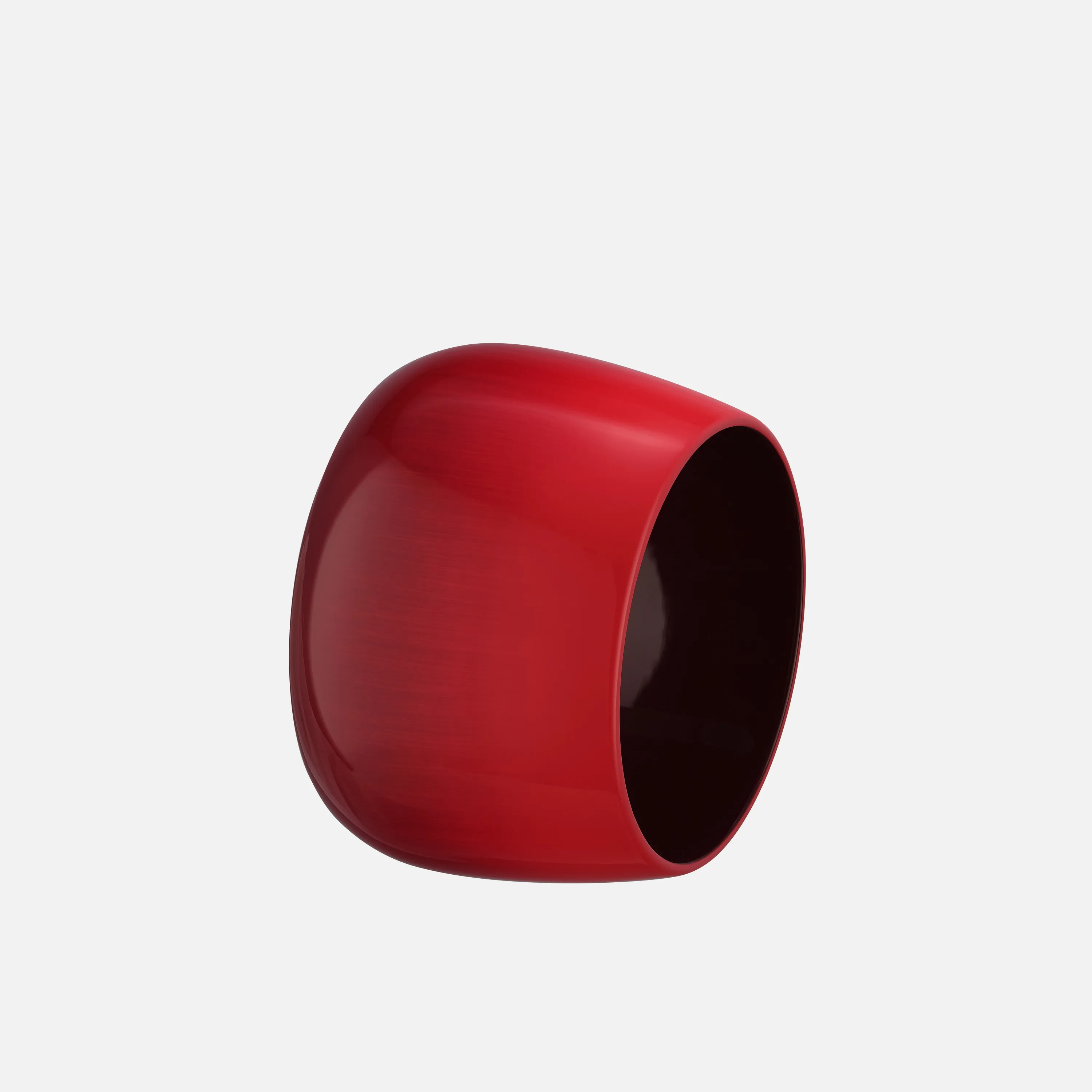 Mẫu vòng tay bản to mang thiết kế tối giản, bề mặt ứng dụng kỹ thuật mài lụa càng làm nổi bật hiệu ứng chuyển màu từ đậm đến nhạt. Sản phẩm có hai phiên bản: xanh lam đậm và màu đỏ.